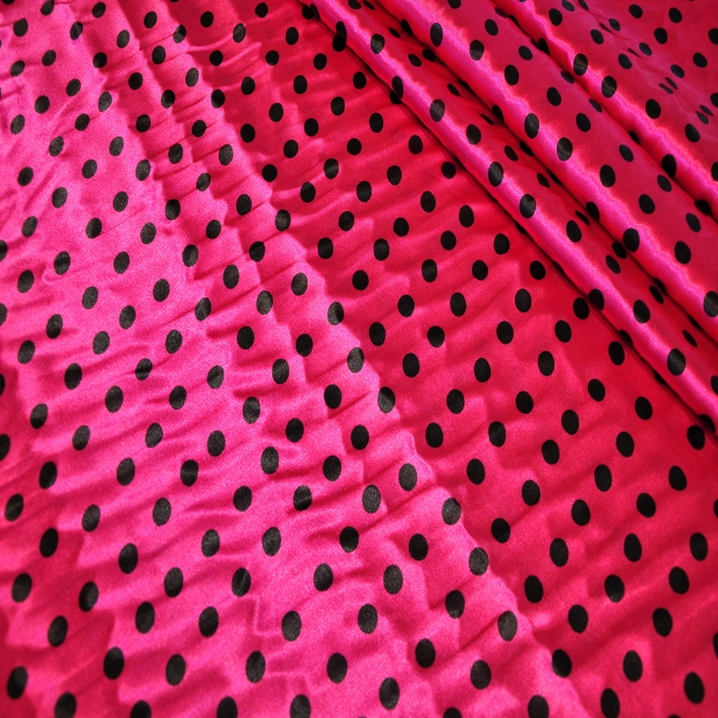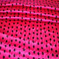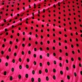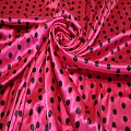 Атлас тонкий принт (малиновый фон черный горох 1см)