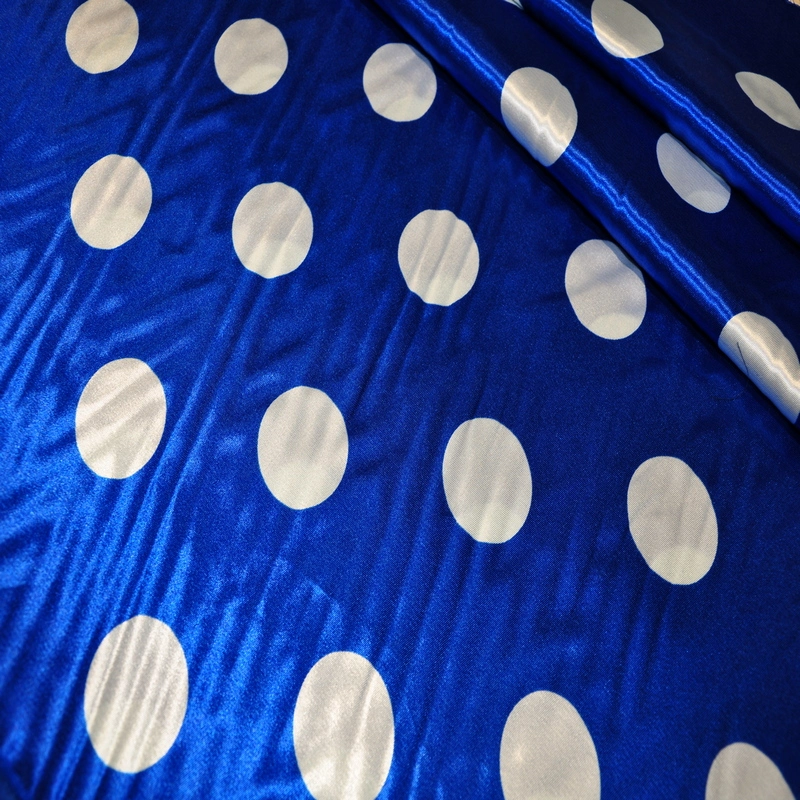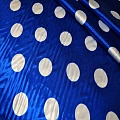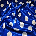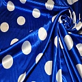 Атлас тонкий принт (васильковый фон белый горох 4см)