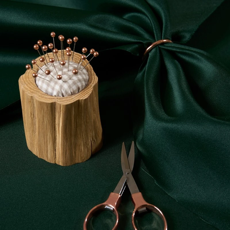 По своей структуре атлас прокатный это плотная атласная ткань с матовой лицевой поверхностью, которая тем не менее обладает свойством "сиять" практически при любом освещении. Ткань не обсыпается по краям, проста в обработке и абсолютно не эластична. В прокатном атласе нет никакого запаса стрейча, поэтому пошитые из него платья не потеряют свою форму и не растянутся.