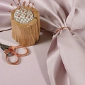 По своей структуре атлас прокатный это плотная атласная ткань с матовой лицевой поверхностью, которая тем не менее обладает свойством "сиять" практически при любом освещении. Ткань не обсыпается по краям, проста в обработке и абсолютно не эластична. В прокатном атласе нет никакого запаса стрейча, поэтому пошитые из него платья не потеряют свою форму и не растянутся.