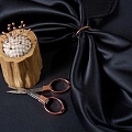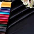 По своей структуре атлас прокатный это плотная атласная ткань с матовой лицевой поверхностью, которая тем не менее обладает свойством "сиять" практически при любом освещении. Ткань не обсыпается по краям, проста в обработке и абсолютно не эластична. В прокатном атласе нет никакого запаса стрейча, поэтому пошитые из него платья не потеряют свою форму и не растянутся.