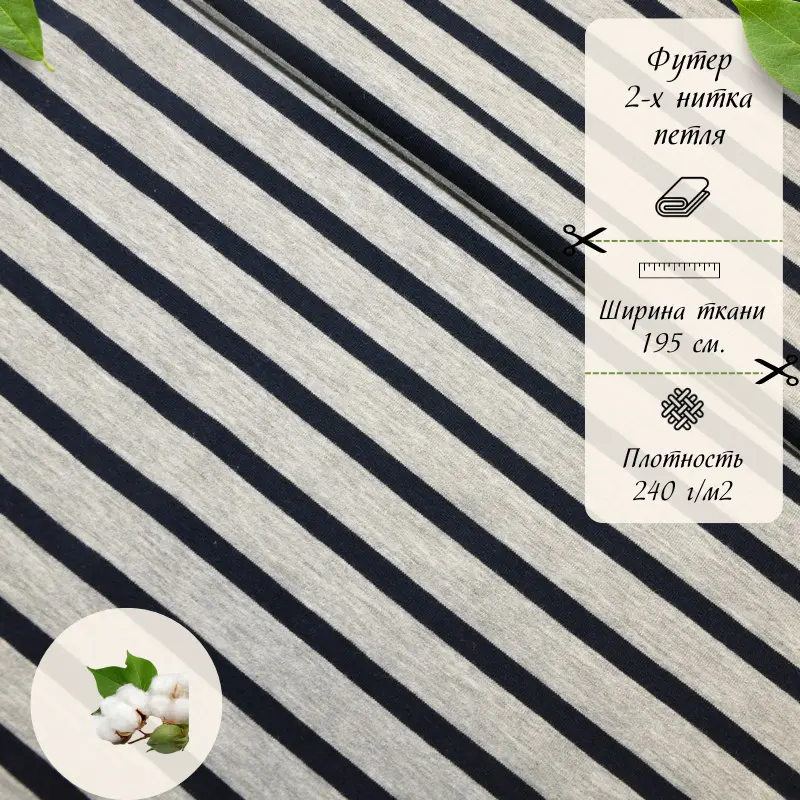 Футер 2-х нитка Полоска (серый меланж т.синяя полоска)