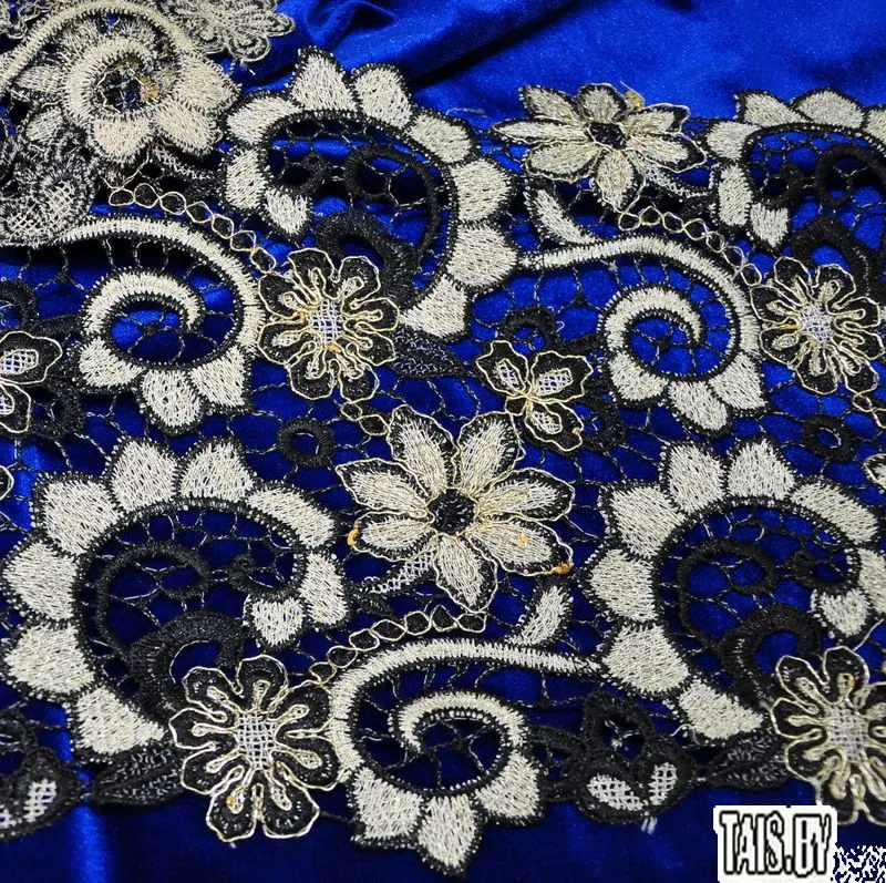 Тесьма ажурная. Кружево применяется для отделки одежды, белья в виде окаймления или вставок, а также в оформлении интерьера, декоративных панно, скатертей, тюлей, покрывал. Главные особенности кружева - воздушность, тонкость, узорность.