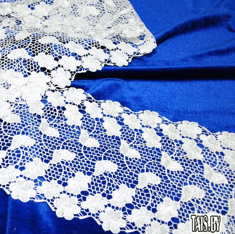 Тесьма ажурная. Кружево применяется для отделки одежды, белья в виде окаймления или вставок, а также в оформлении интерьера, декоративных панно, скатертей, тюлей, покрывал. Главные особенности кружева - воздушность, тонкость, узорность.