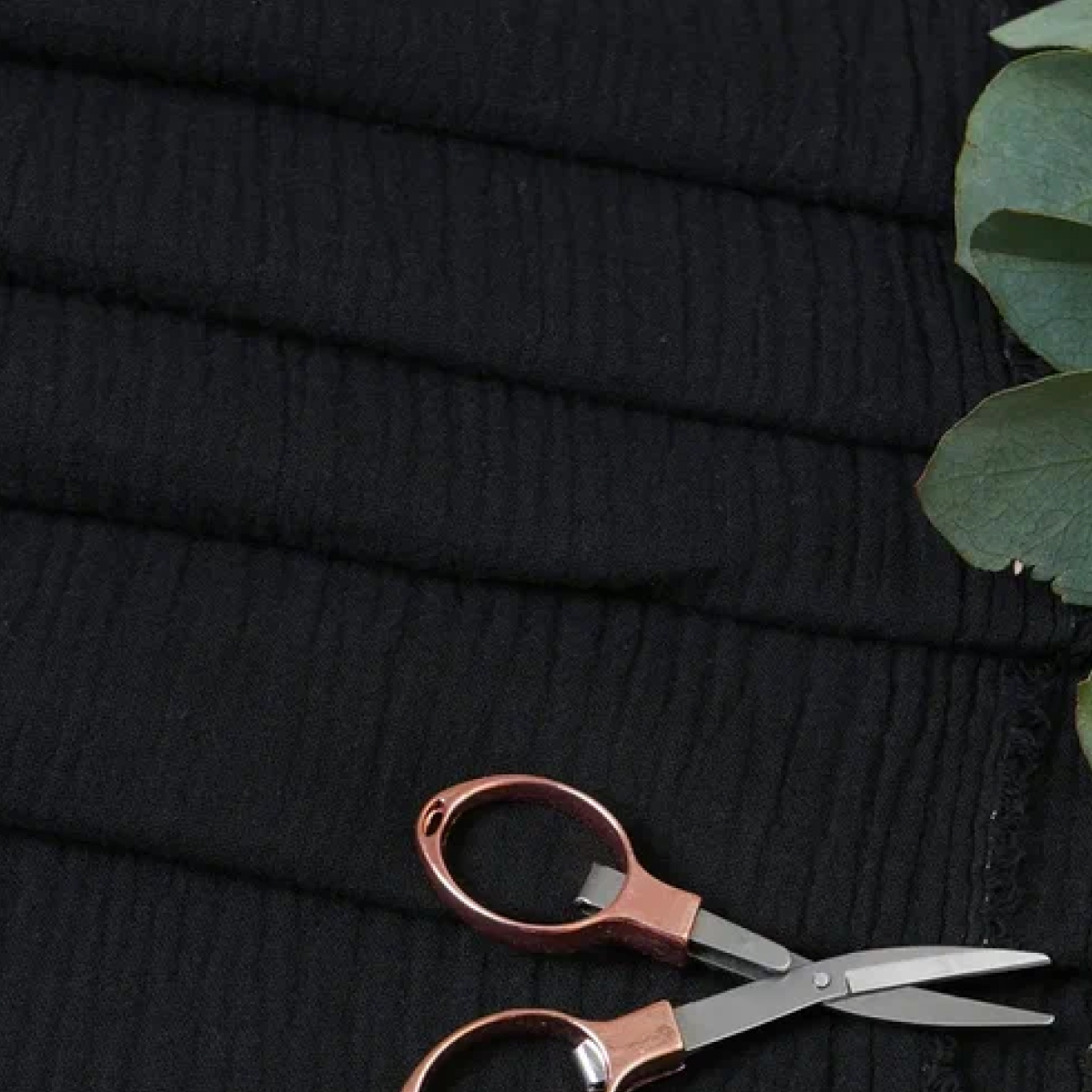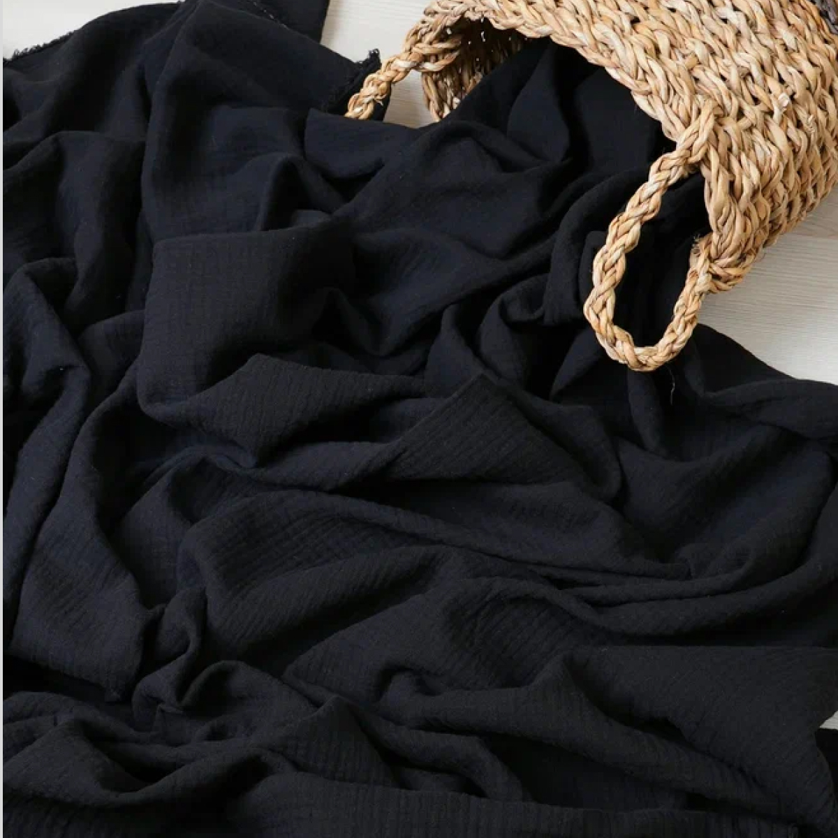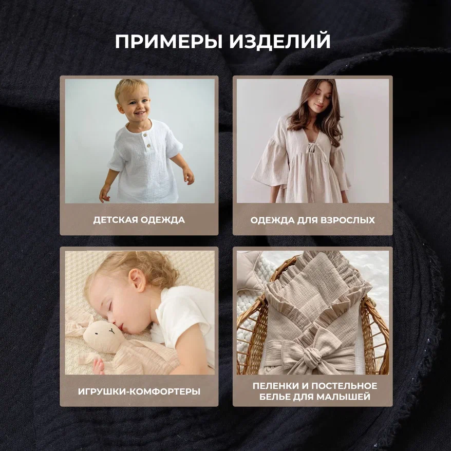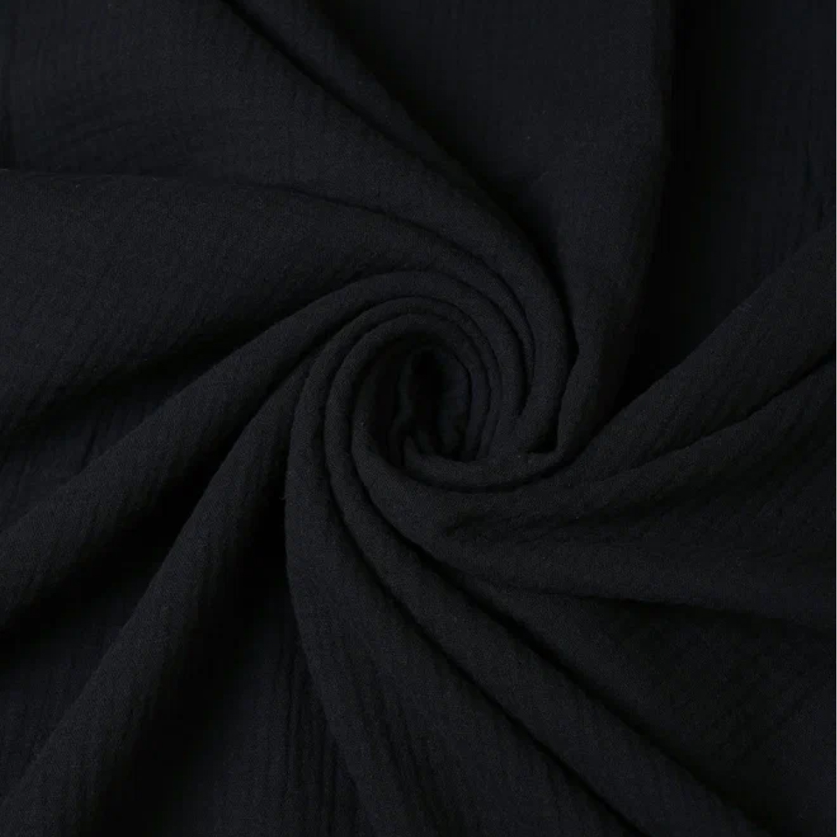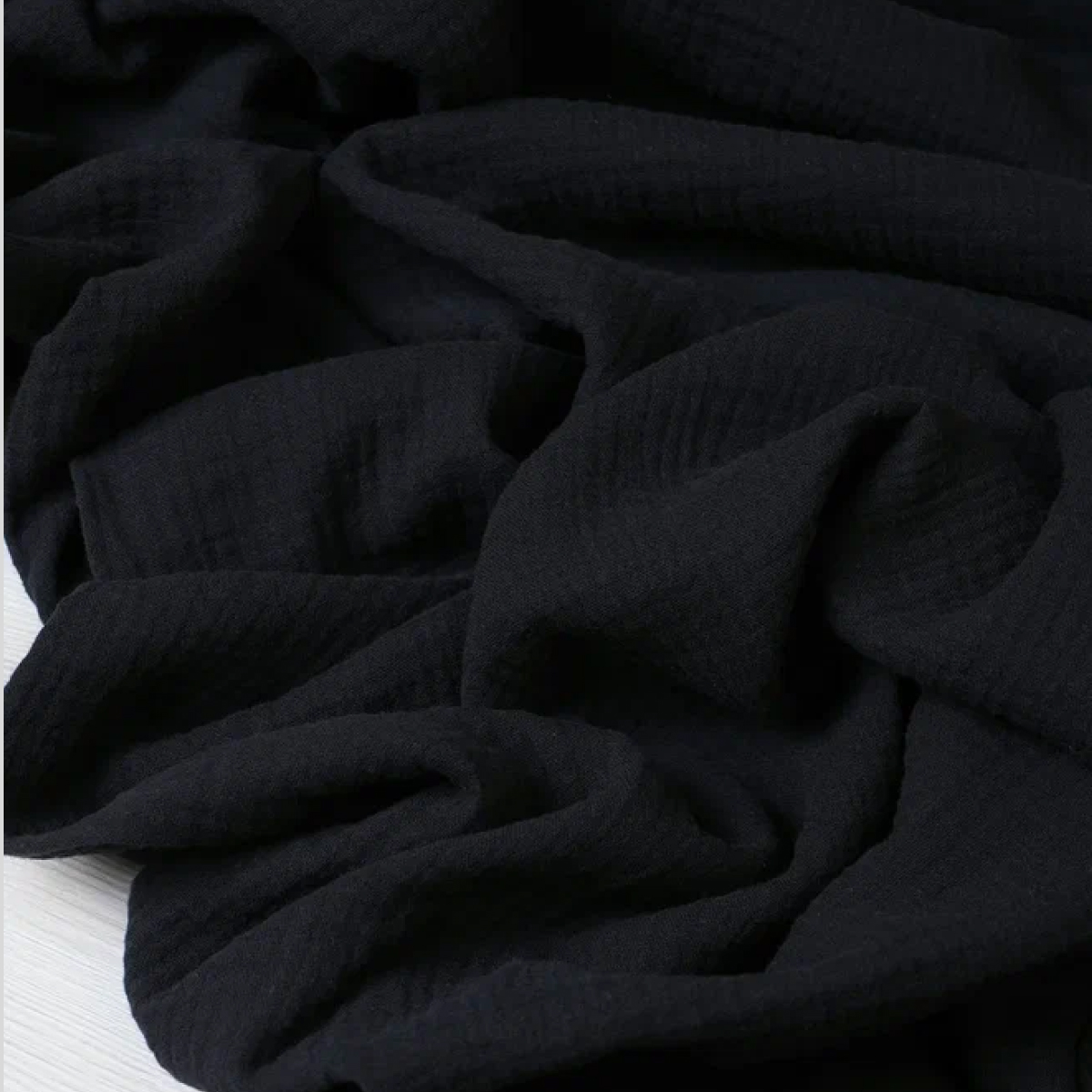 Муслин с двойной нитью  жатый — это очень нежный эко-хлопок для пошива воздушных летних платьев для взрослых и для детей, легких костюмов, мужских рубашек, стильных блуз, легких и мягких детских пеленок, комплектов постельного белья (покрывало, наволочки). Эта натуральная, полупрозрачная ткань идеальна для летней поры, она легкая и воздухопроницаемая.