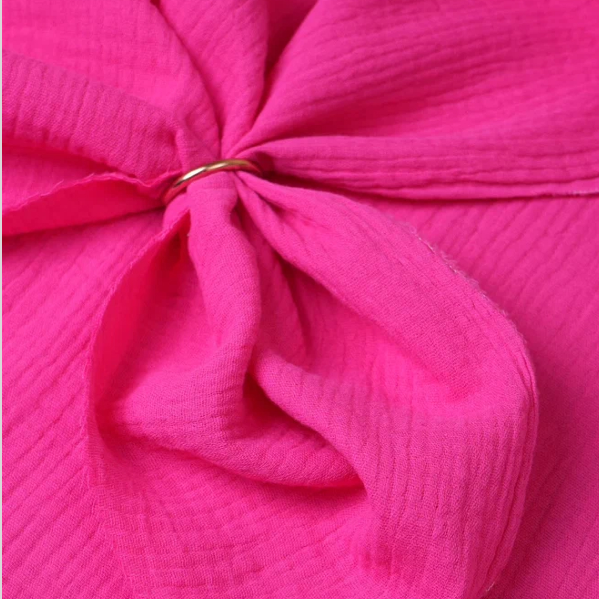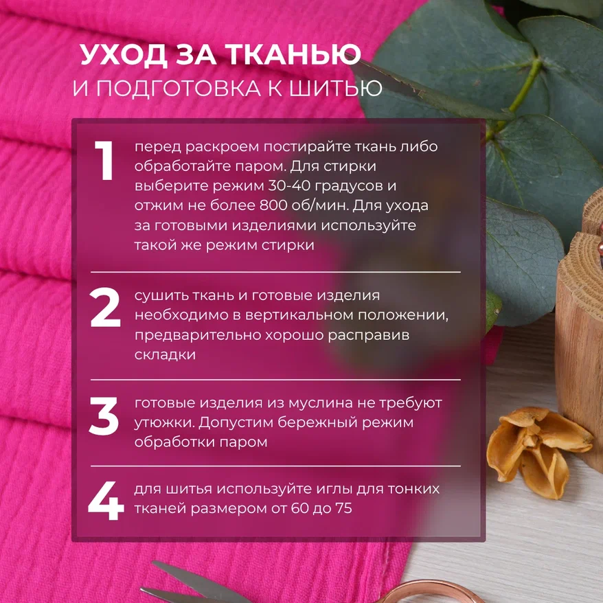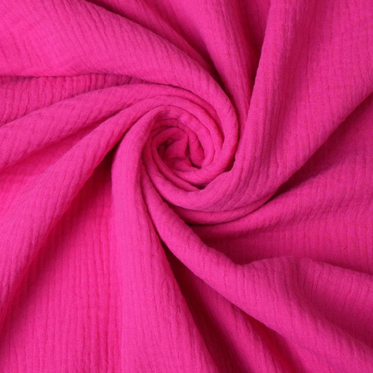Муслин с двойной нитью  жатый — это очень нежный эко-хлопок для пошива воздушных летних платьев для взрослых и для детей, легких костюмов, мужских рубашек, стильных блуз, легких и мягких детских пеленок, комплектов постельного белья (покрывало, наволочки). Эта натуральная, полупрозрачная ткань идеальна для летней поры, она легкая и воздухопроницаемая.