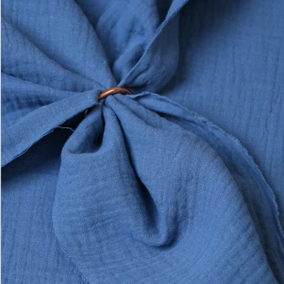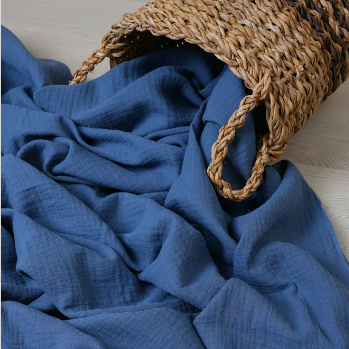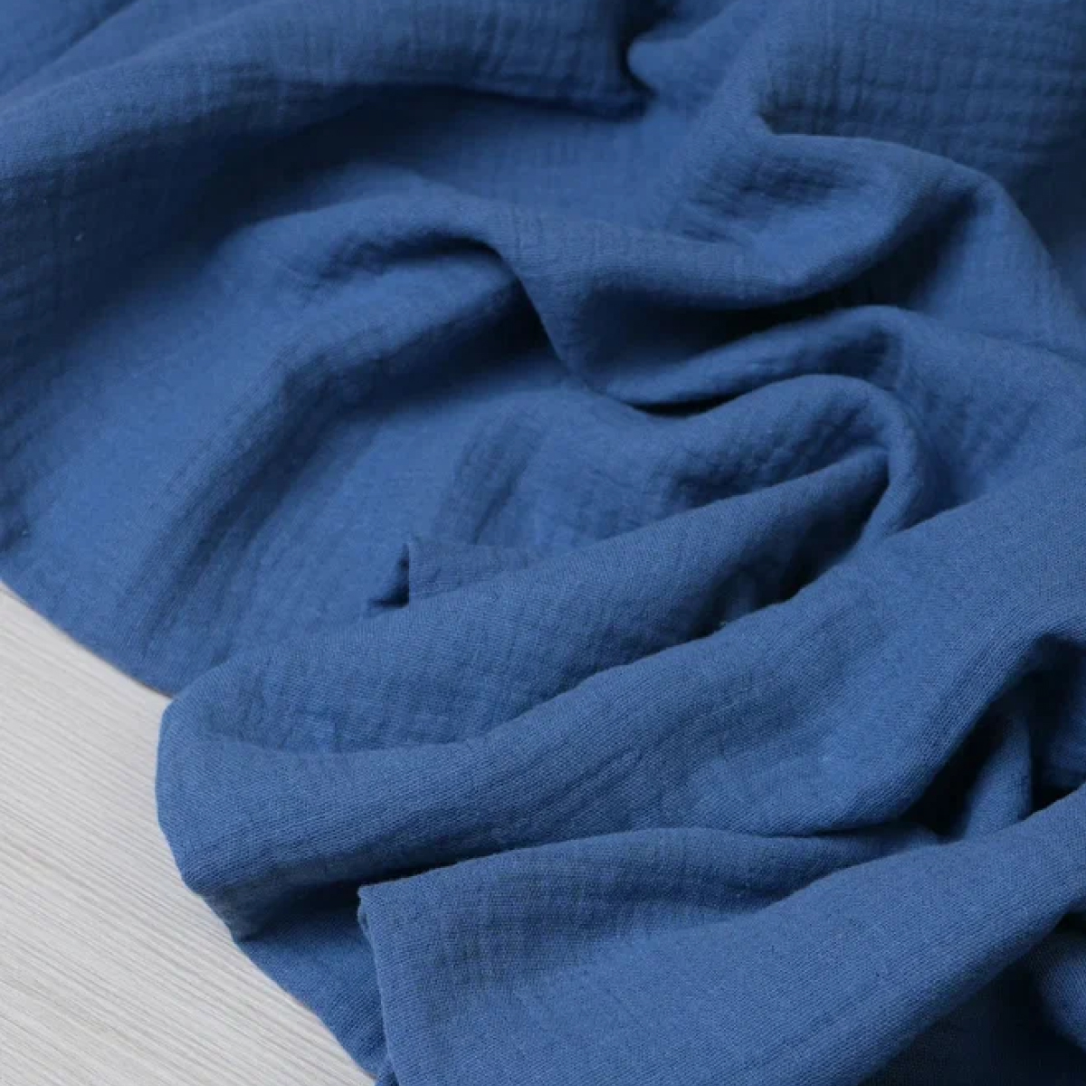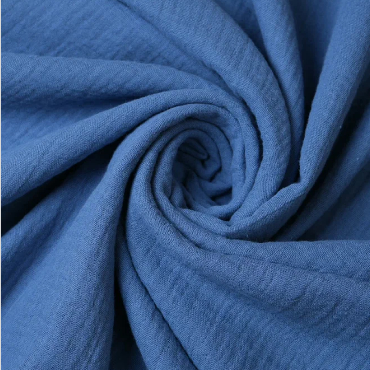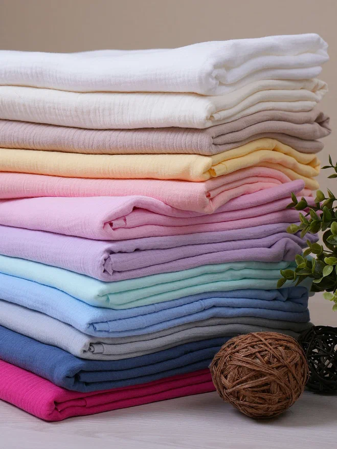 Муслин с двойной нитью жатый — это очень нежный эко-хлопок для пошива воздушных летних платьев для взрослых и для детей, легких костюмов, мужских рубашек, стильных блуз, легких и мягких детских пеленок, комплектов постельного белья (покрывало, наволочки). Эта натуральная, полупрозрачная ткань идеальна для летней поры, она легкая и воздухопроницаемая.