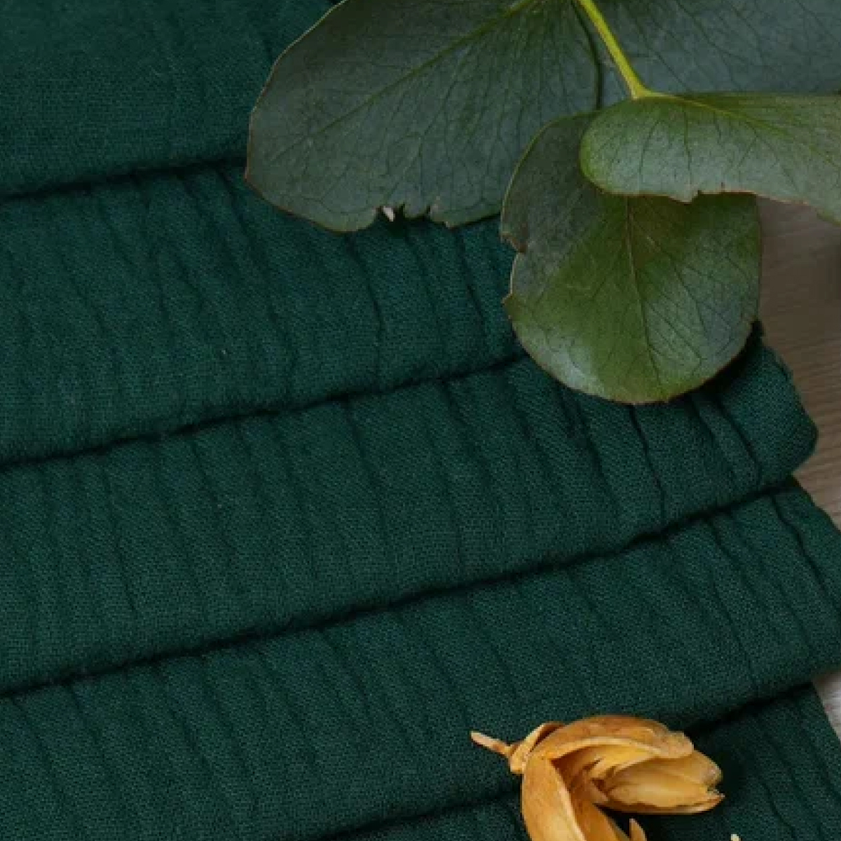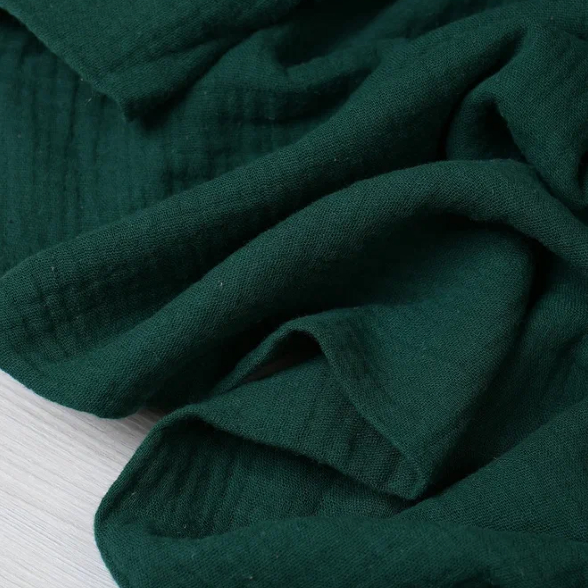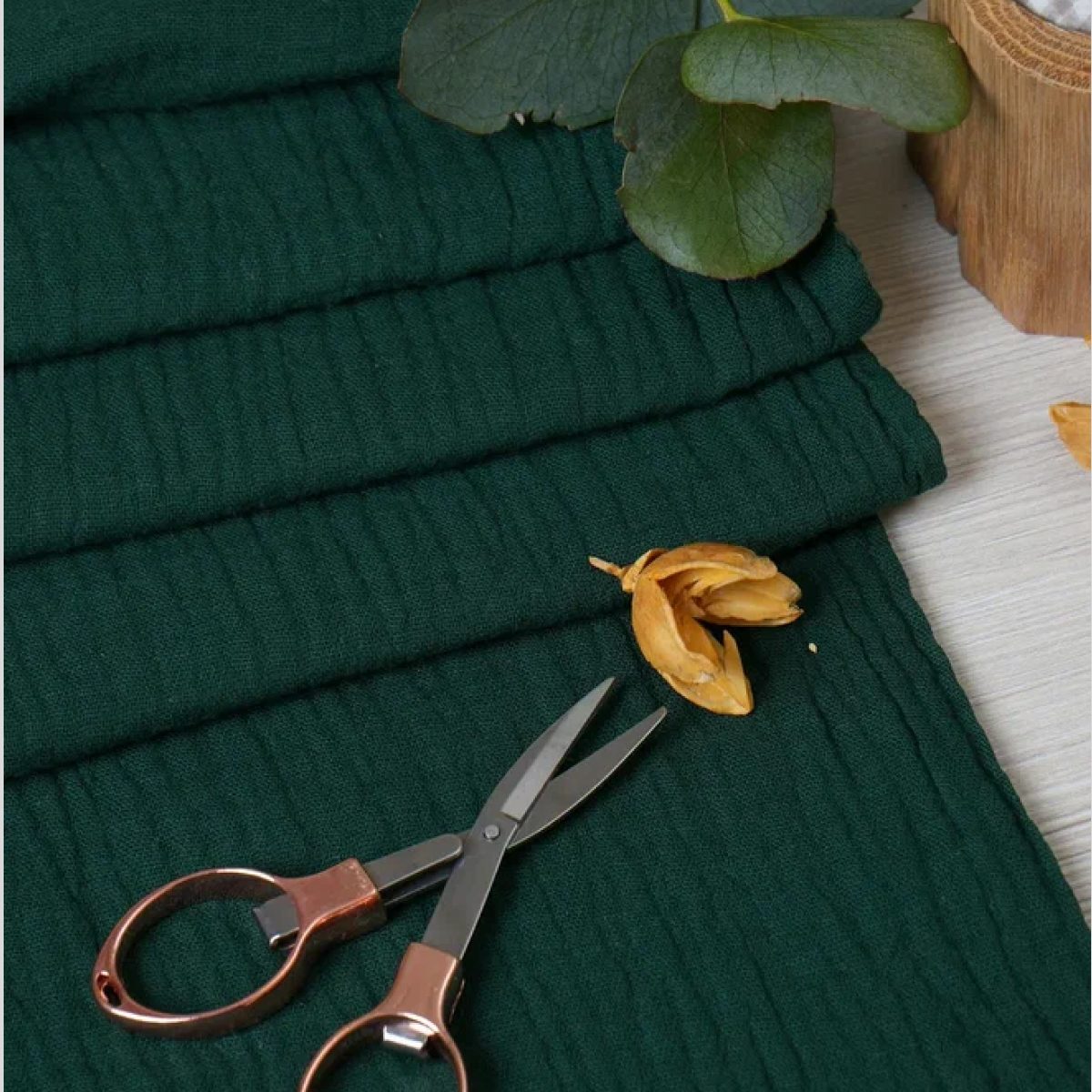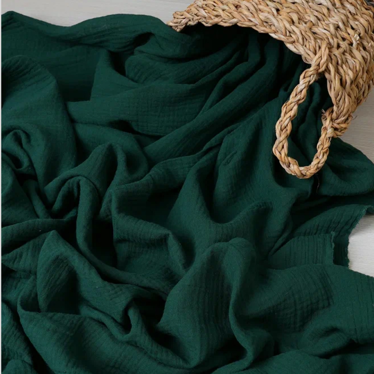 Муслин с двойной нитью  жатый — это очень нежный эко-хлопок для пошива воздушных летних платьев для взрослых и для детей, легких костюмов, мужских рубашек, стильных блуз, легких и мягких детских пеленок, комплектов постельного белья (покрывало, наволочки). Эта натуральная, полупрозрачная ткань идеальна для летней поры, она легкая и воздухопроницаемая.