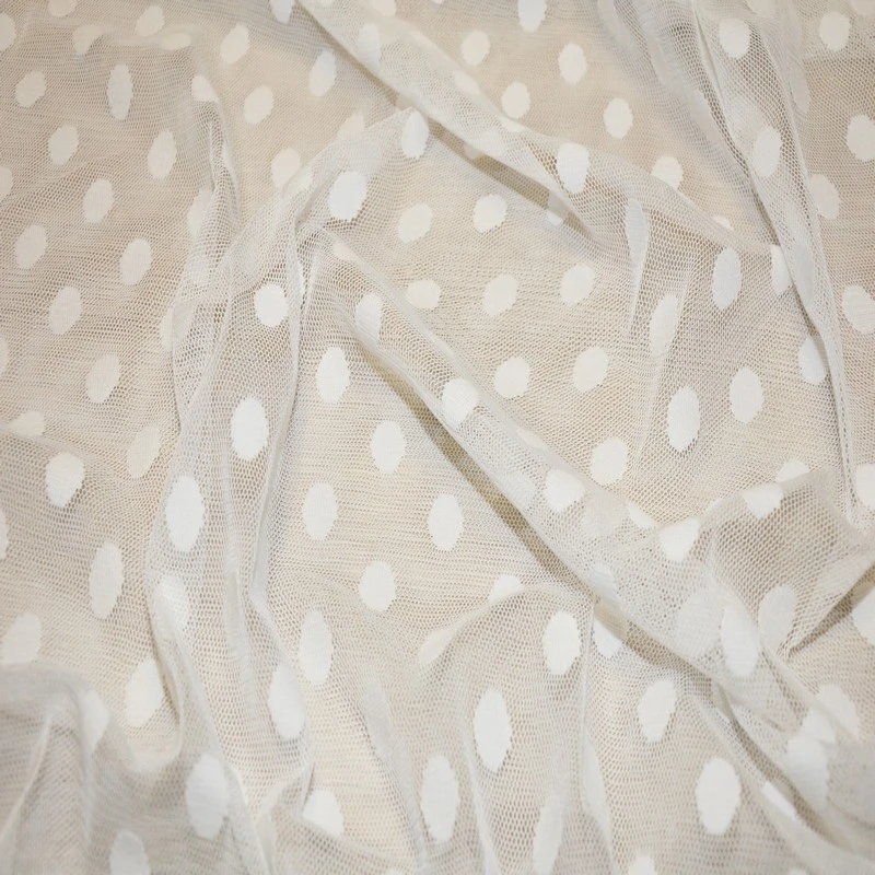 Который сезон подряд не теряет свою актуальность мода на одежду из фатина, сетки, евросетки и т.д. Невероятная легкость, воздушность, разнообразие форм и фактур, создаваемая этими тканями, не оставляет модниц равнодушными. Если однотонные варианты уже немного приелись, то на замену им приходят сетки с принтами, узорами, жаккардами. Предлагаем Вашему вниманию стрей сетку горох, которая завоевала популярность у многих знаменитостей.