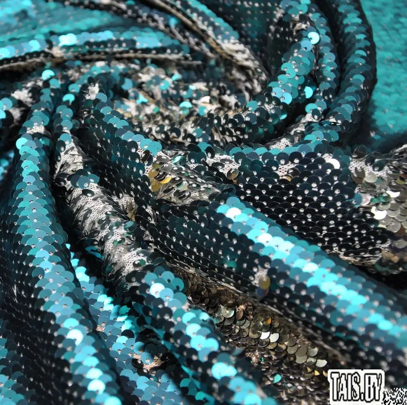 Пайеточная ткань двухцветная. Основа - сетка. Яркий выбор для нарядных платьев, карнавальных и танцевальных костюмов, декора праздника и помещений.