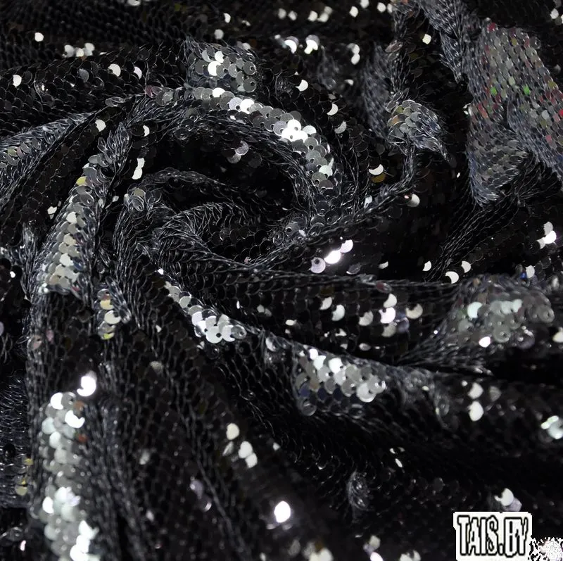 Пайеточная ткань двухцветная чешуя (черный с серебром)