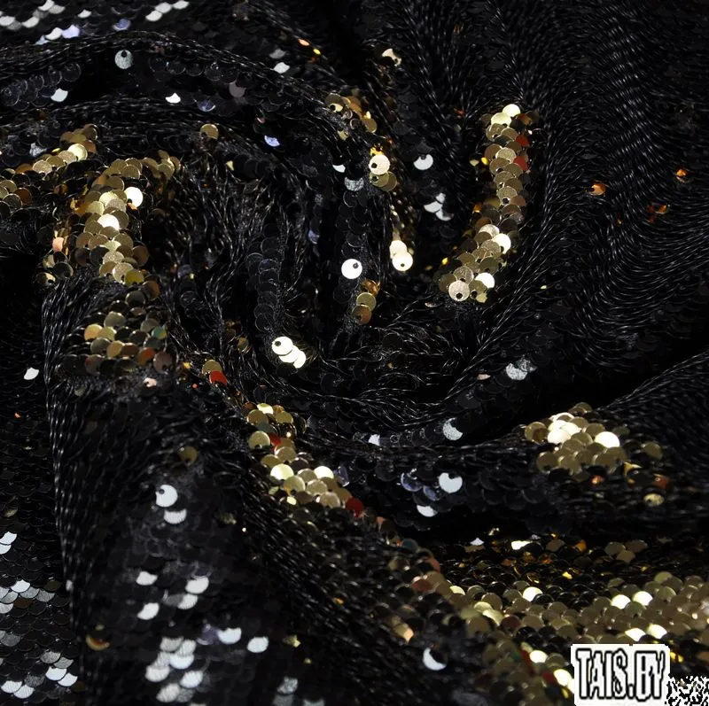 Пайеточная ткань двухцветная чешуя (черный с золотом)