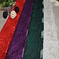 Дорогие гипюры для свадебных и вечерних платьев уже сами по себе украшение, требующее лишь правильного и качественного исполнения. Купонная или сплошная вышивка, кружева, использование всевозможных напылений, бисера и много другого, в зависимости от фасона и веяний моды делают данные гипюры произведением искусства, а пошитые из них изделия эталонами красоты и элегантности.